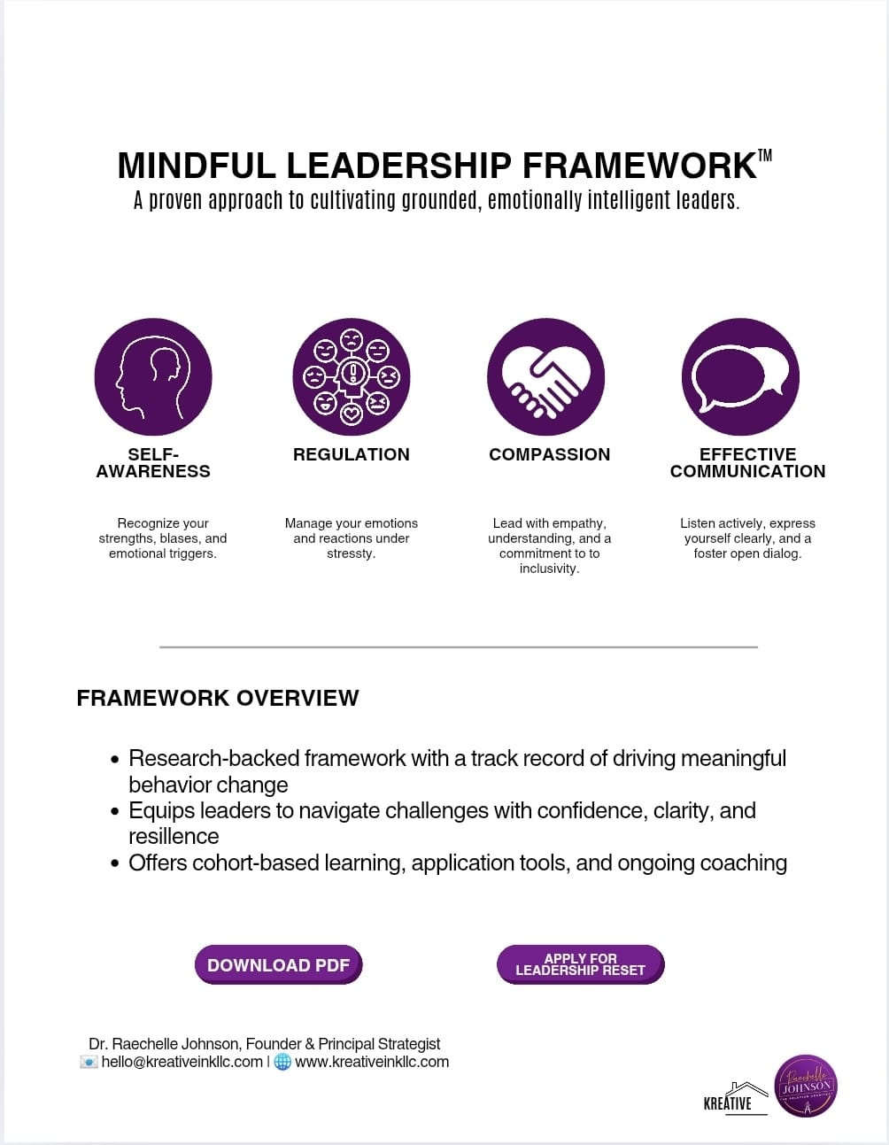 The Mindful Leadership Framework™ is a recalibration experience for leaders who lead with excellence while sacrificing clarity, calm, and voice behind the scenes